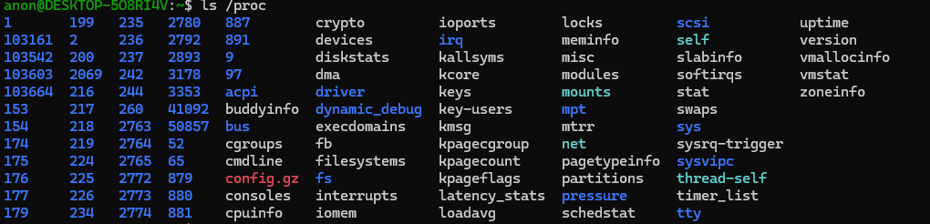 ... and so forthif we take a look at the /proc directory we can notice an interesting pattern: